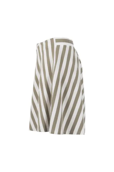 Dieser süße Rock aus angenehmem Jersey-Material überzeugt mit seiner komfortablen Passform und der trendigen Streifenoptik. Ideal für entspannte und vielseitige Outfits.