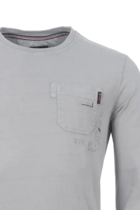 Langarm-Shirt in gewaschener Optik. Eine Tasche mit tonaler Stickerei ziert die linke Brust.