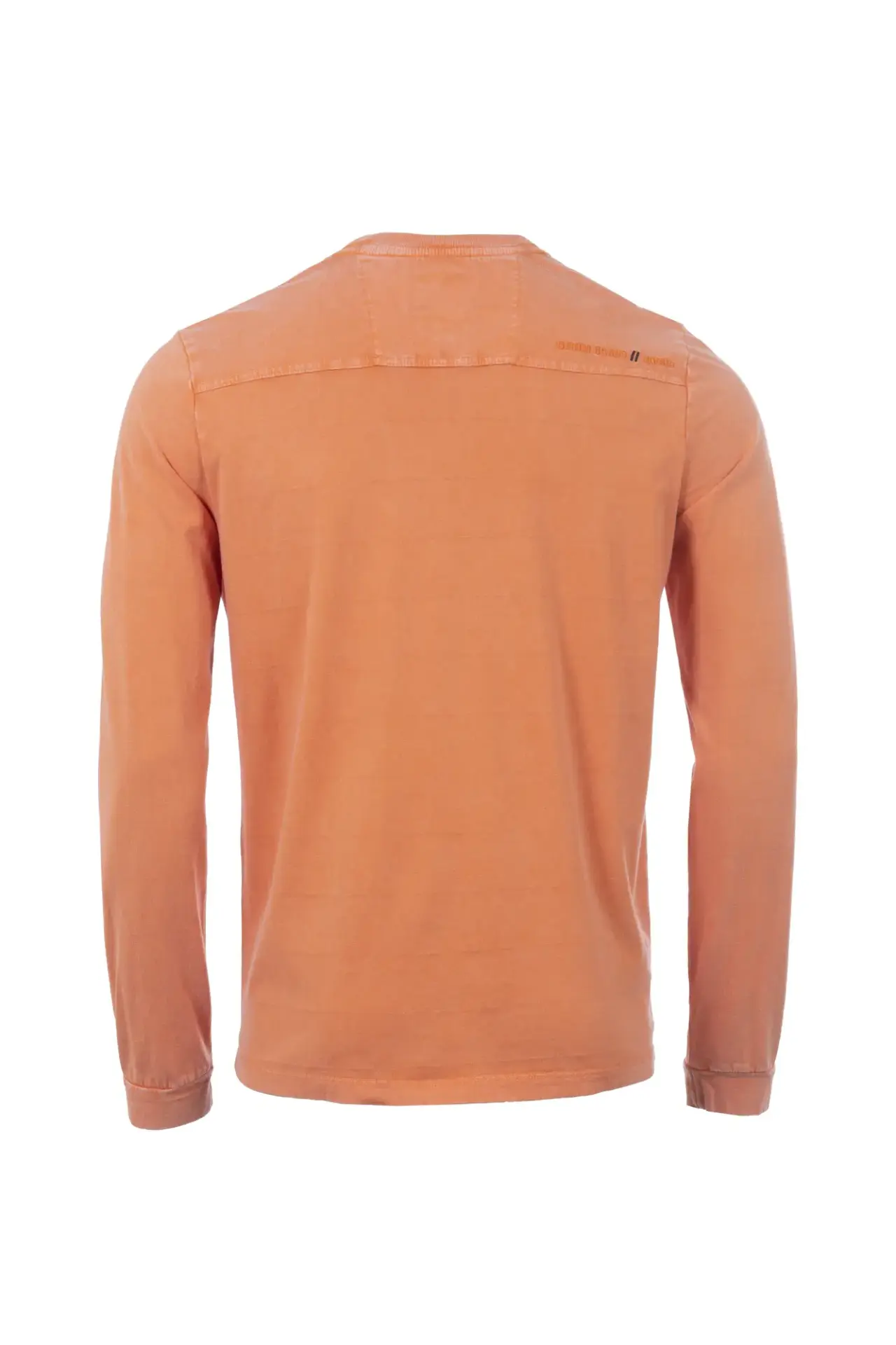 Langarm-Shirt in gewaschener Optik. Eine Tasche mit tonaler Stickerei ziert die linke Brust.