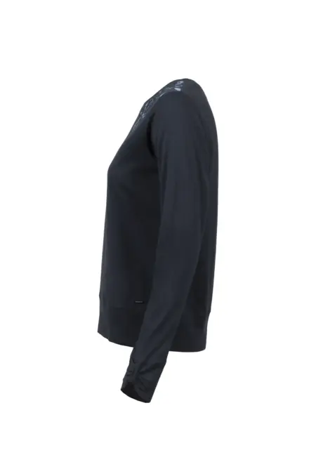 Langarmshirt mit gepeachter Oberfläche und Rundhalsausschnitt. Die floralen Motive an Schulter und seitlich am Bund verleihem dem Shirt einen verspielten, femininen Look. Dieser wird abgerundet durch die Raffung am Ärmelabschluss.