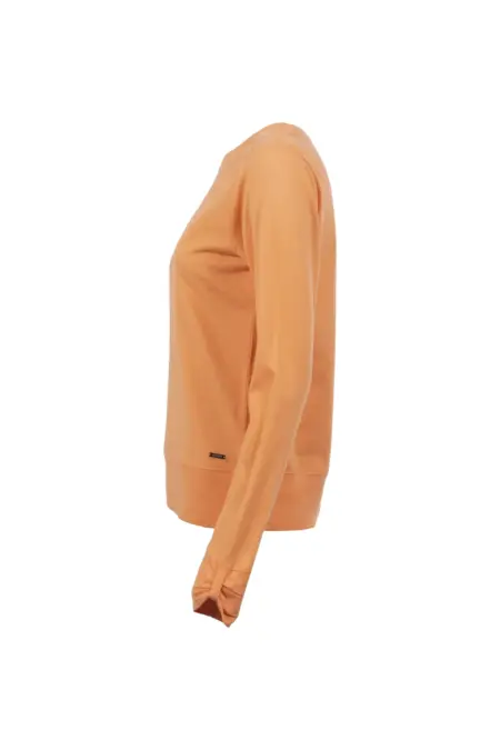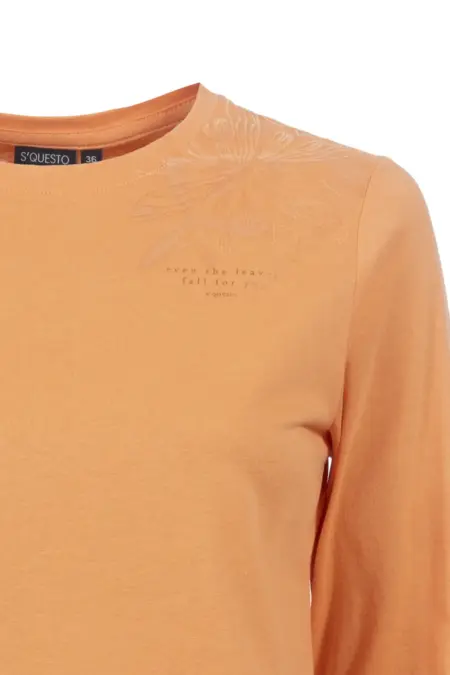Langarmshirt mit gepeachter Oberfläche und Rundhalsausschnitt. Die floralen Motive an Schulter und seitlich am Bund verleihem dem Shirt einen verspielten, femininen Look. Dieser wird abgerundet durch die Raffung am Ärmelabschluss.
