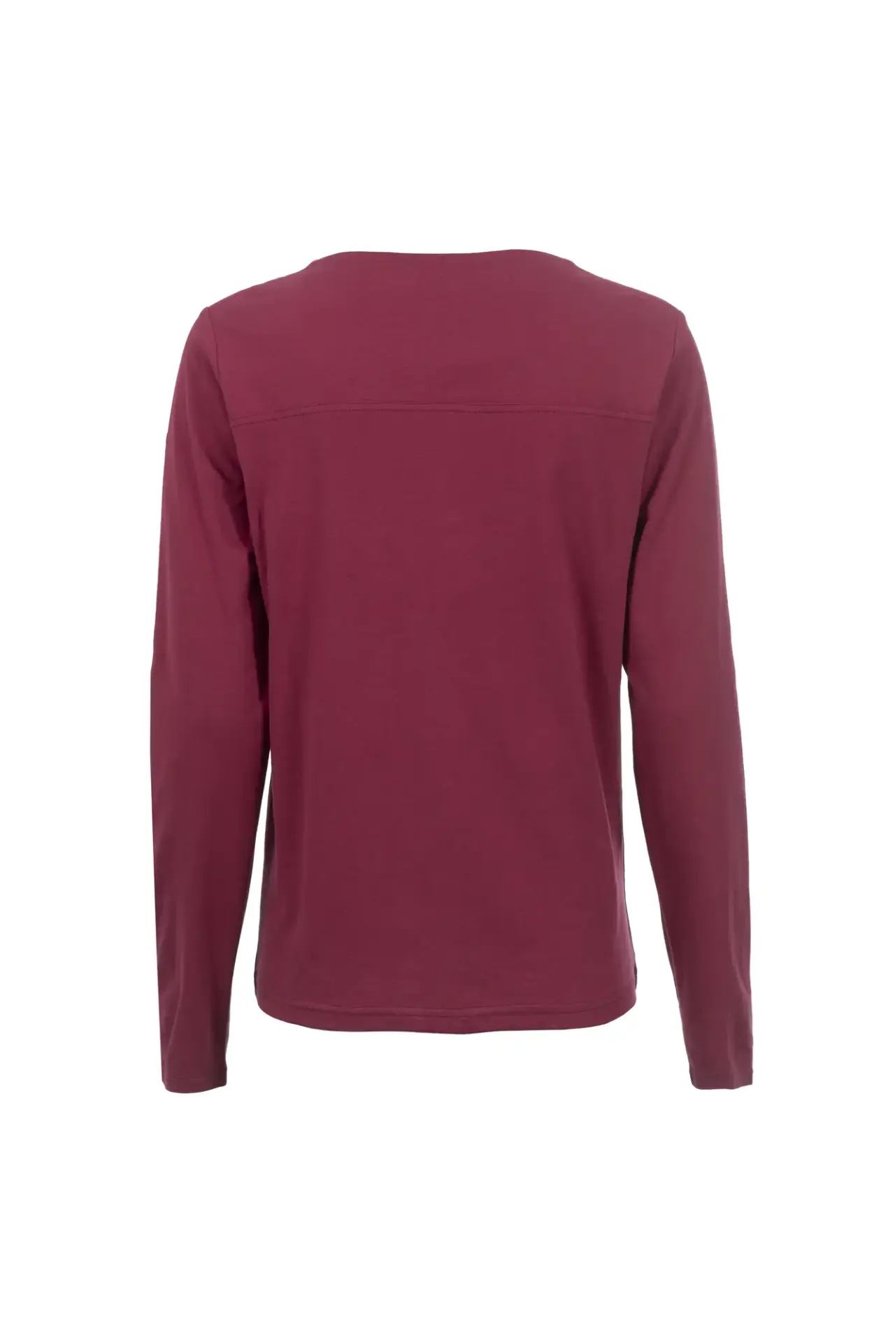 Legeres Langarmshirt mit Rundhalsausschnitt. Das gepeachte Material macht das Shirt besonders gemütlich. Ein farbenfroher Print mit Blättermotiv und Lettering-Elementen rundet den herbstlichen Look ab.