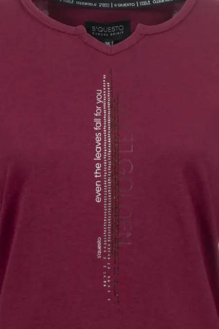 Dieses Langarmshirt vereint einen modischen Look mit Komfort. Das Shirt hat eine angenehme Passform, während zarte Glitzersteine und ein Lettering-Print den Look aufwerten – abgerundet durch den kleinen V-Cut am Kragen. Das Shirt kann perfekt mit einem S’questo Blazer oder einer Jacke kombiniert werden.