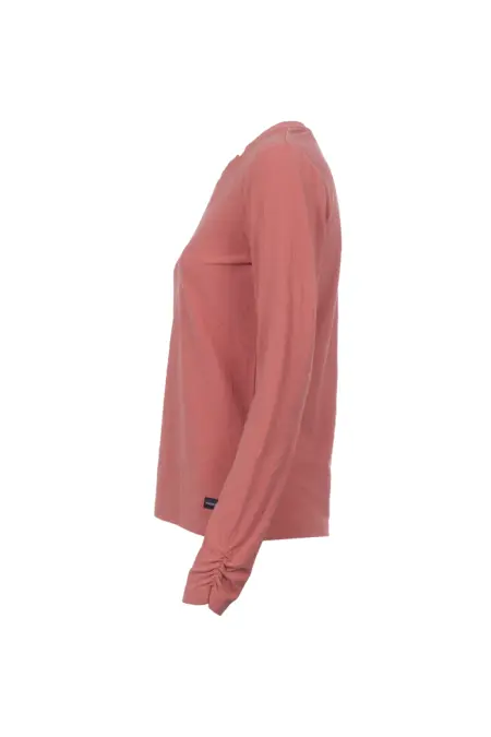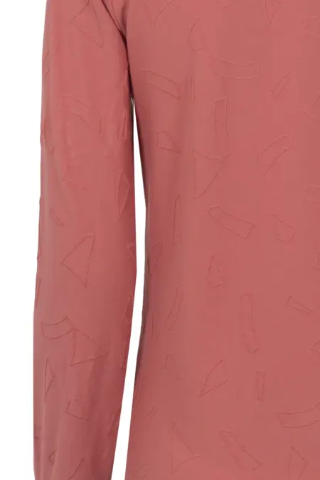 Einfarbiges Langarmshirt mit grafischem Jacquard-Dessin für das Gewisse Etwas. Die Raffungen an den Ärmeln und kleine V-Cuts am Kragen fügen einen femininen Touch hinzu.