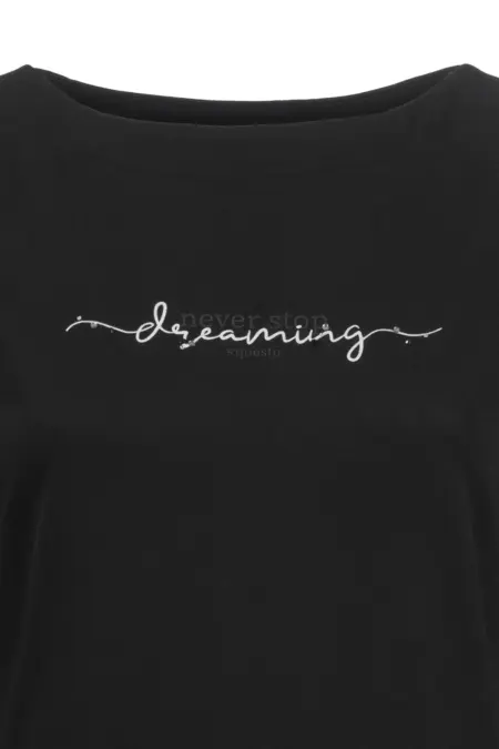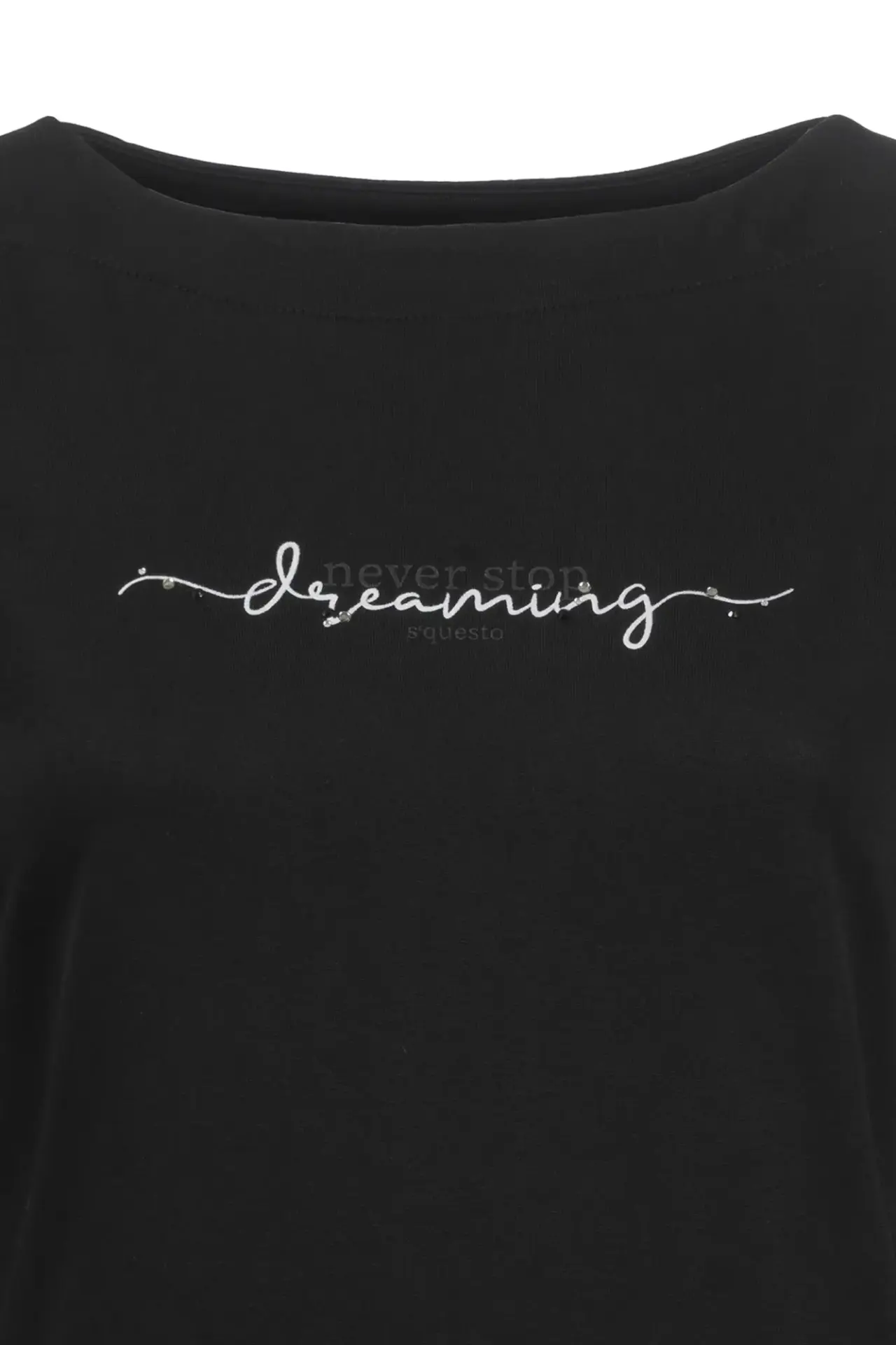 Das komfortable Langarmshirt zeichnet sich durch einen filigranen Lettering Print, aberundet durch kleine Glitzersteine auf der Brust.