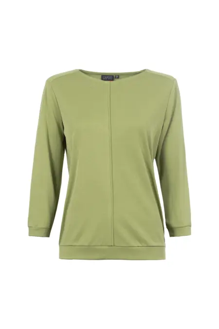 Schlichtes Shirt aus angenehmer Modalware mit 3/4-Arm . Eine mittlere Ziernaht und ein zarter Print geben dem Shirt das besondere Etwas.