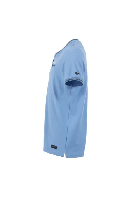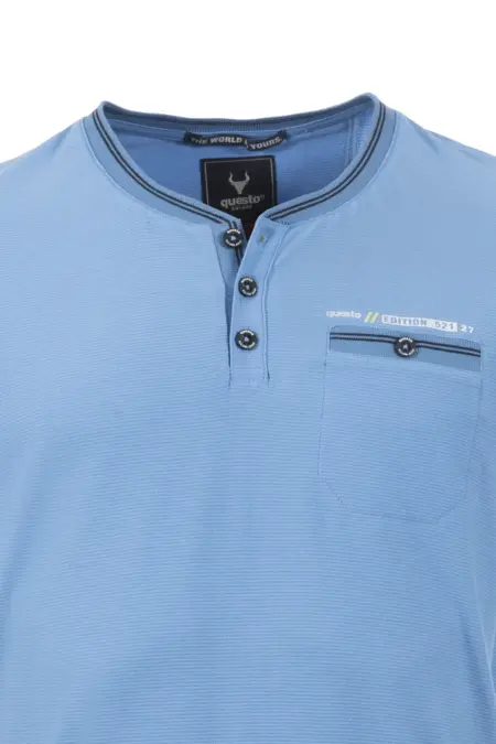 Zeitloses T-Shirt mit Henleykragen und aufgesetzter Tasche auf der Brust.