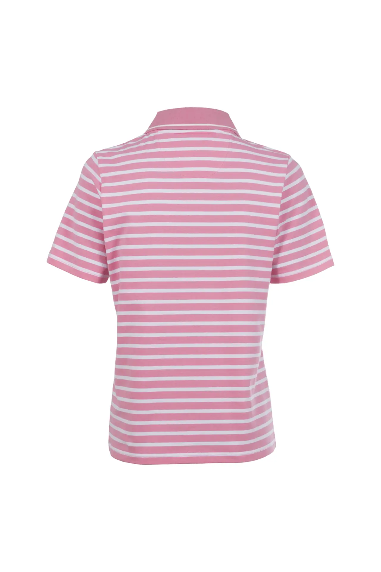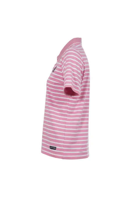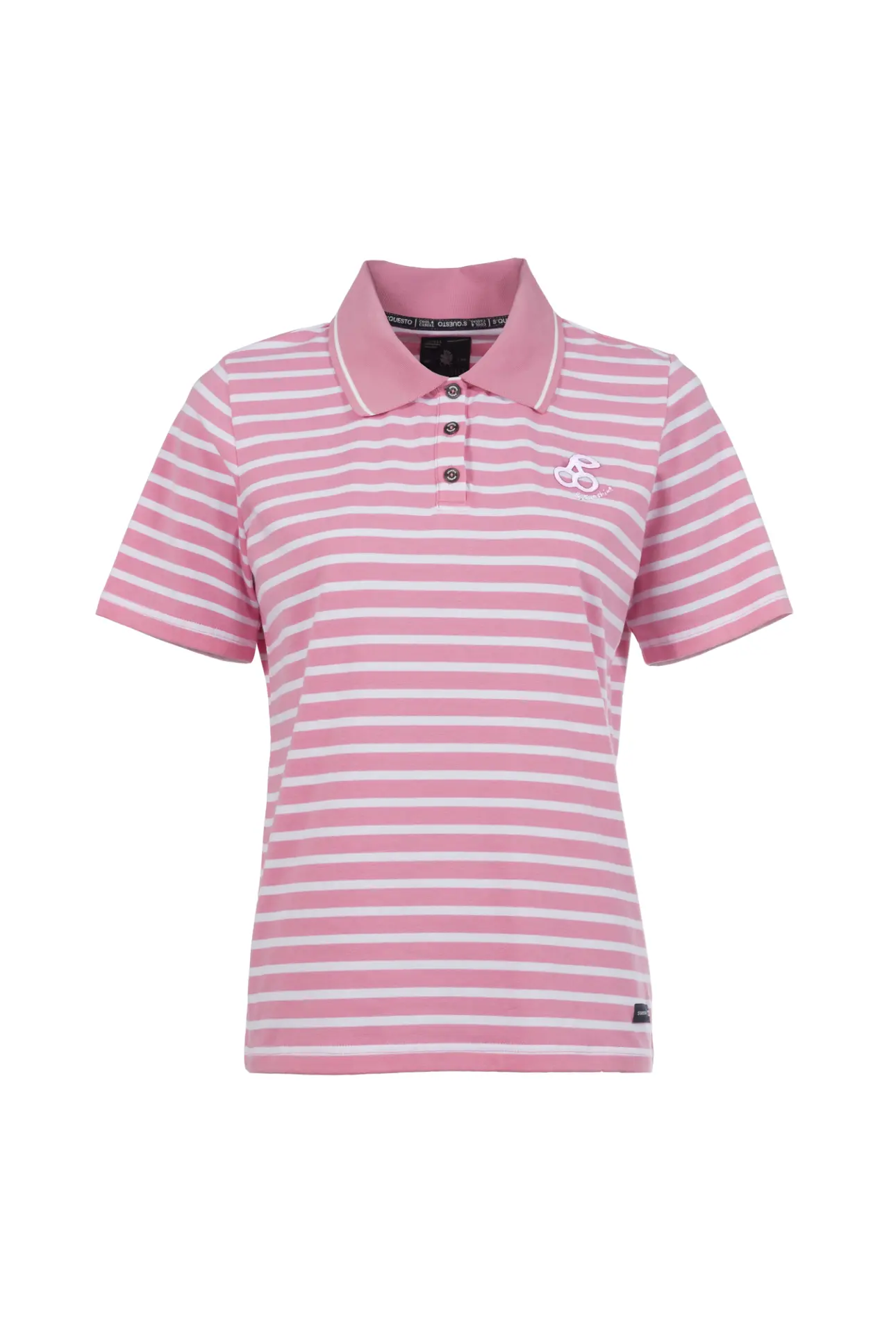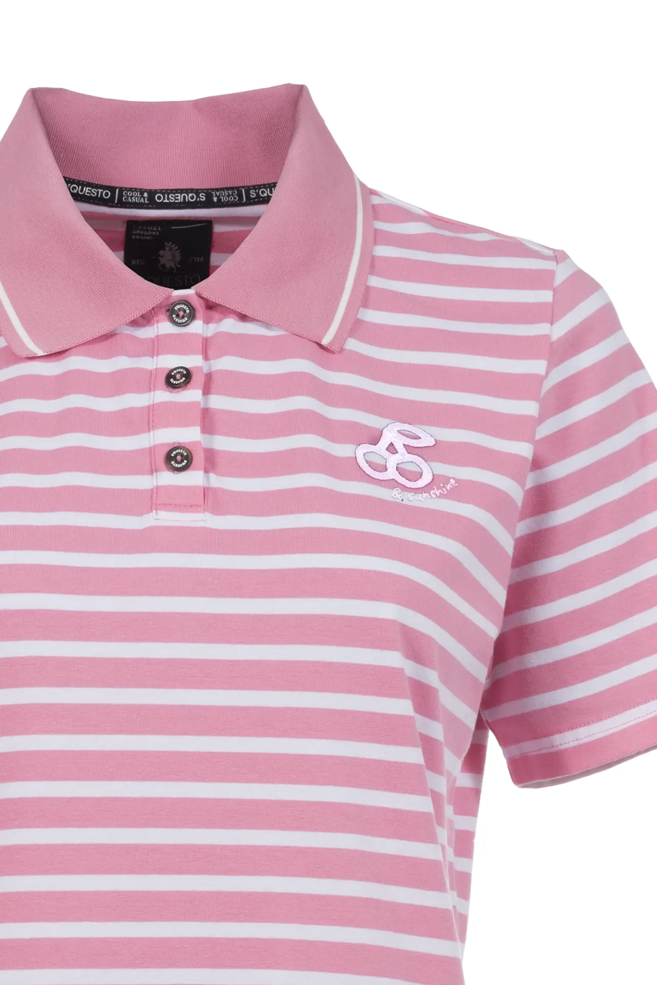 Kurzärmeliges Poloshirt in frischen Farben und moderner Streifenoptik. Die kleine Kirsch-Stickerei auf der Brust setzt einen verspielten Akzent und unterstreicht den sportiv-femininen Look. Perfekt für bequeme Freizeit-Outfits.