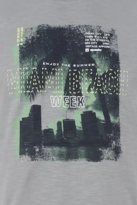 Rundhals T-Shirt mit coolem Frontprint. Ein besonderer Hingucker sind die kontrastigen Nahtpipings an Ärmelabschluss und Schulterpartie.