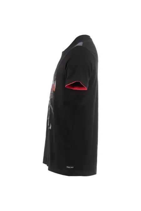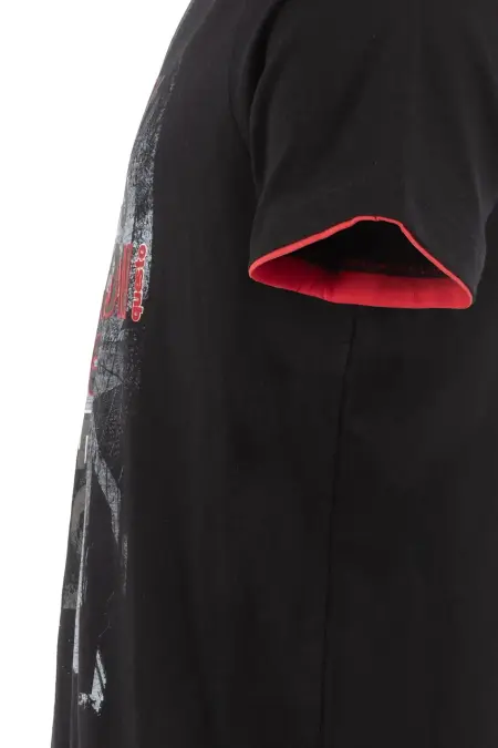 Rundhals T-Shirt mir modernem Frontprint mit Lettering-Elementen. Abgerundet wird der Look durch farblich passende Materialeinsätze an den Schultern.