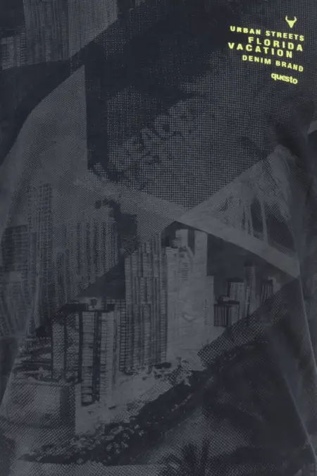 Rundhals T-Shirt in cooler Flammgarn-Optik. Dieser Look wird durch einen zusätzlichen Front-all-over-Print in Kontrastfarbe unterstützt.