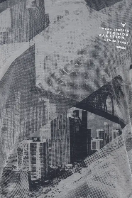 Rundhals T-Shirt in cooler Flammgarn-Optik. Dieser Look wird durch einen zusätzlichen Front-all-over-Print in Kontrastfarbe unterstützt.