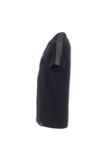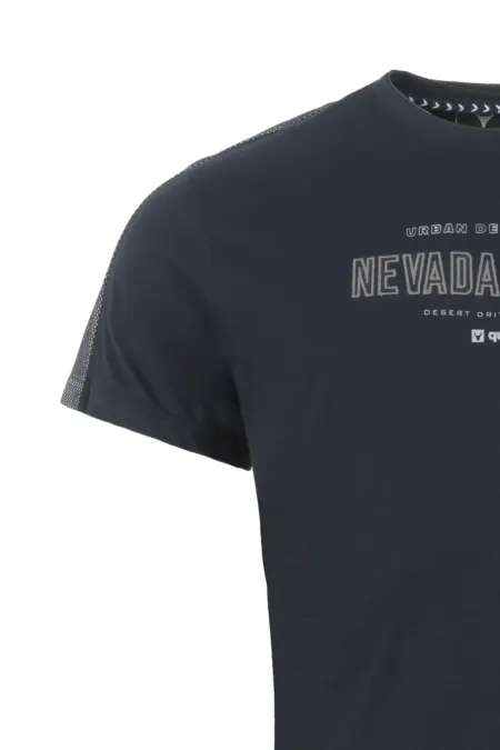 Rundhals T-Shirt mit großer Lettering-Stickerei auf der Brust. Das breite Tape auf der Schulternaht sorgt für einen besonders modernen Look.