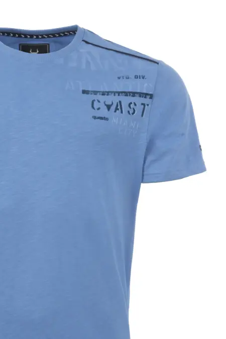 Rundhals T-Shirt aus Baumwollqualität in moderner Flammgarnoptik. Ein besonderer Lettering-Print ziert die linke Brustpartie.