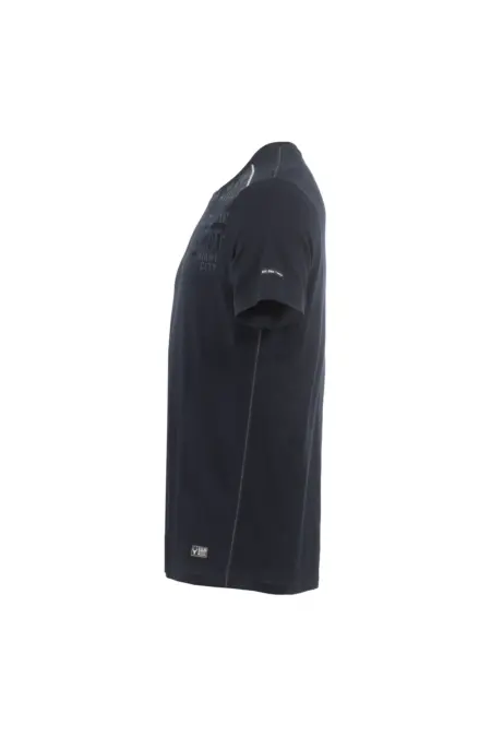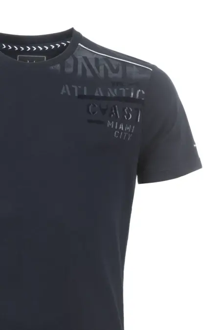 Rundhals T-Shirt aus Baumwollqualität in moderner Flammgarnoptik. Ein besonderer Lettering-Print ziert die linke Brustpartie.