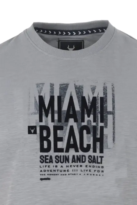 Rundhals T-Shirt in moderner Flammgarn-Optik. Ein Lettering-Print in Kontrastfarbe auf der Brust wertet das Shirt auf.