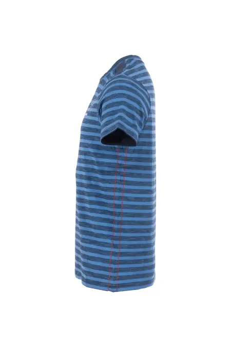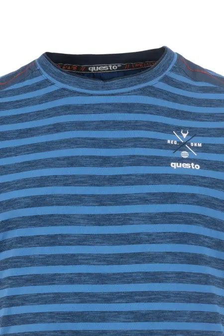 Rundhals T-Shirt in spannender Streifenoptik. Mit kleinem und modernem Print auf der Brust.