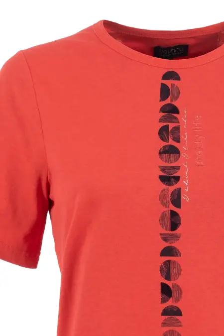 Legeres T-Shirt mit angenehmem Comfort Sleeve. Dieses Shirt macht der vertikale Print aus, welcher besonders mit einer offenen Jacke oder einem Blazer kombiniert zur Geltung kommt.