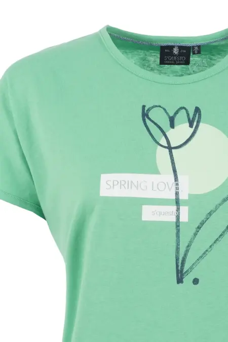 Schlichtes T-Shirt mit überschnittenem Halbarm und Rundhalsausschnitt. Aufgepeppt wird der Look durch einen platzierten Frontprint.