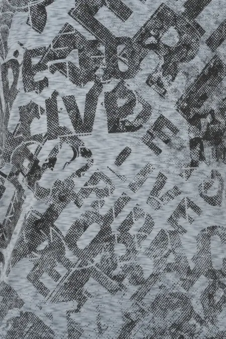 Rundhals T-Shirt aus Flammgarn in Baumwollqualität. Ein All-over-Print in Kombination mit einem platziertem Print auf der linken Brust ergeben einen coolen Look.