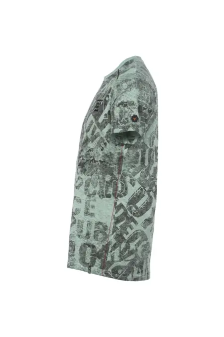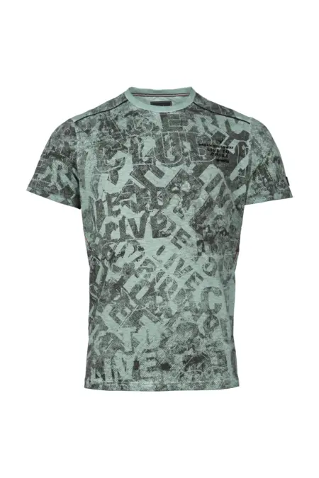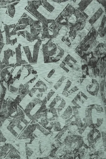 Rundhals T-Shirt aus Flammgarn in Baumwollqualität. Ein All-over-Print in Kombination mit einem platziertem Print auf der linken Brust ergeben einen coolen Look.