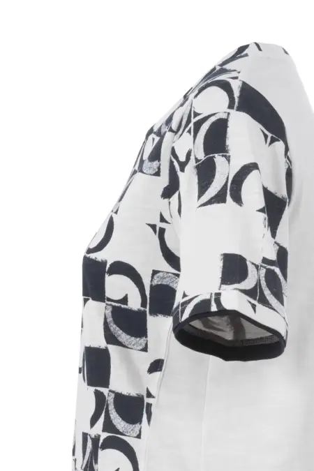 Rundhalsshirt mit angenehmem Comfort-Sleeve. Mit grafischem Allover-Print in Kontrastfarbe auf der Front und unifarbenem Rücken für einen harmonischen Gesamteindruck.
