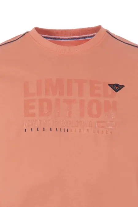 Leichtes Rundhals-T-Shirt für den Sommer mit zweifarbigem Lettering-Frontprint. Besonders ist das Kontrastpiping an den Schulternähten.