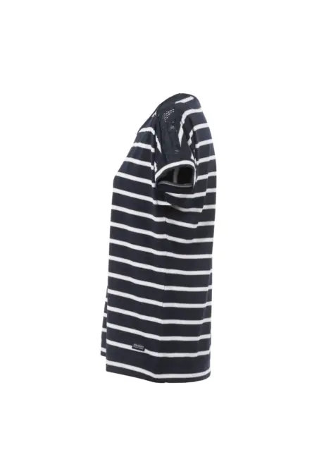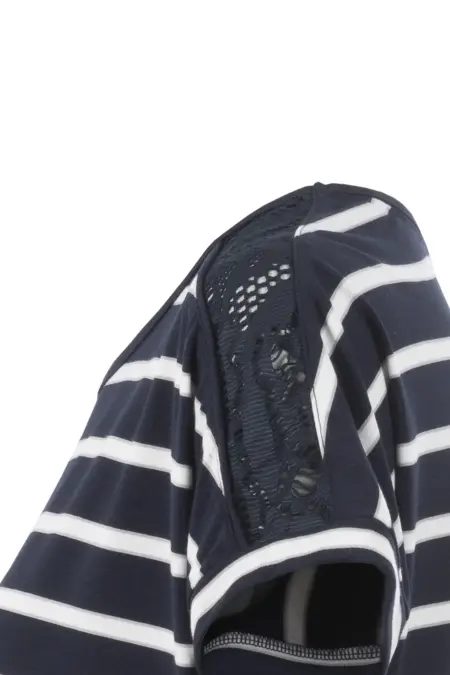 Komfortables T-Shirt in Streifenoptik mit femininen Spitzeneinsätzen an den Schultern. In modernem Boxy Fit mit Rundhalsausschnitt und überschnittener Schulter.