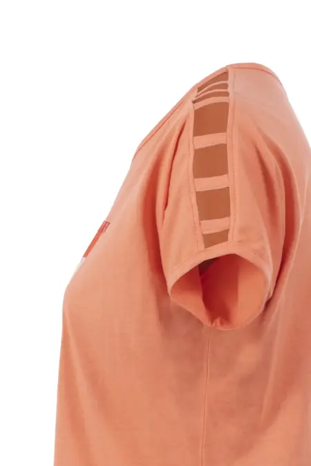T-Shirt mit sommerlichem Frontprint in strahlenden Farben. Die Cut-Outs an den Schultern unterstreichen den sommerlichen Look. Das Shirt hat überschnittene Schultern und einen Rundhalsausschnitt.