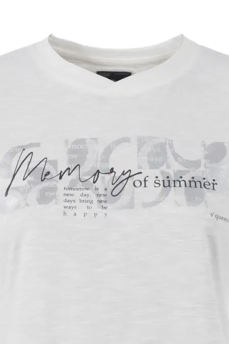 Legeres T-Shirt in Frühlingsfarben. Mit besonders hohem Tragekomfort durch den Comfort Sleeve. Außerdem mit femininem Frontprint mit Metallic-Print und Lettering-Elementen.