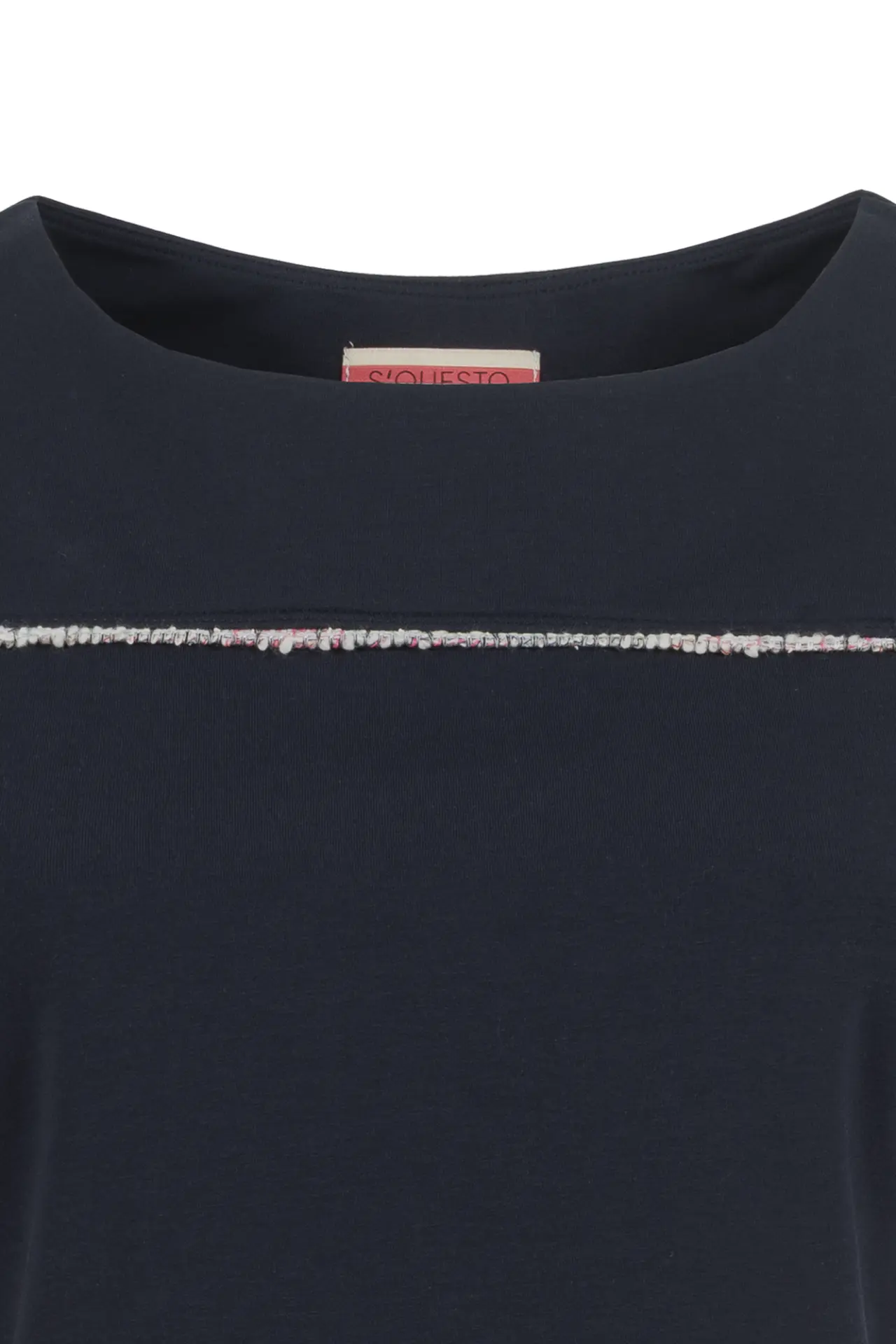 Dieses schlichte Shirt mit Comfort Sleeve überzeugt durch einen zarten Bouclé-Akzent in frischen Farben – ein kleines Detail, das den Look aufwertet. Besonders schön in Kombination mit dem passenden S’questo Bouclé-Blazer oder dem Bouclé-Basecap für einen harmonischen Auftritt.