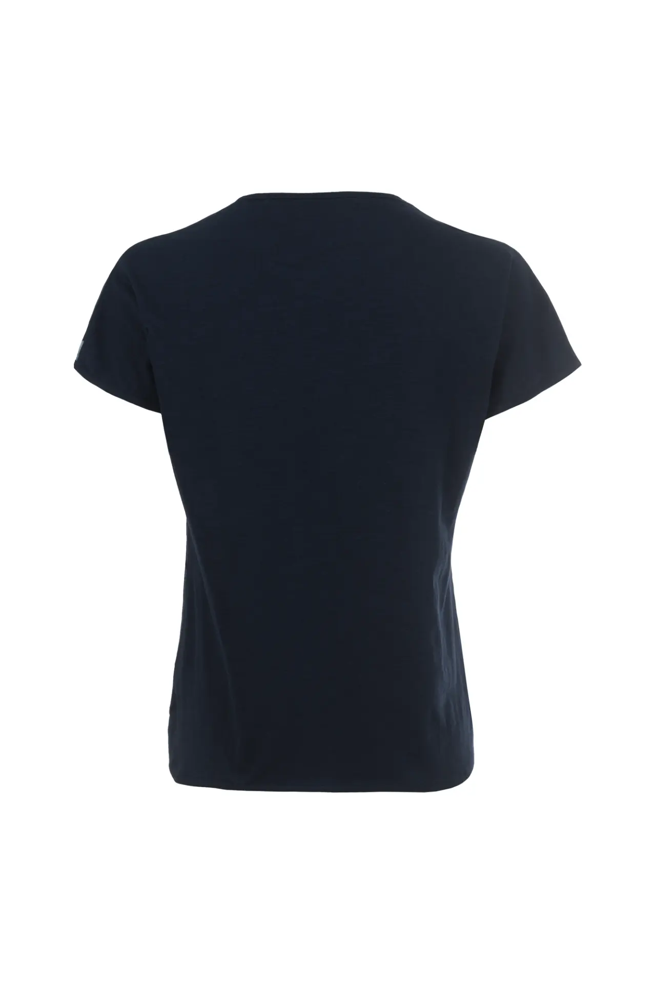 Dieses lässige T-Shirt vereint modische Details mit angenehmem Tragekomfort. Mit modischen Streifen und floralen Elementen für eine feminine Ausstrahlung. Der breite Bund und die Flammgarn-Optik fügen eine sportive Note hinzu.