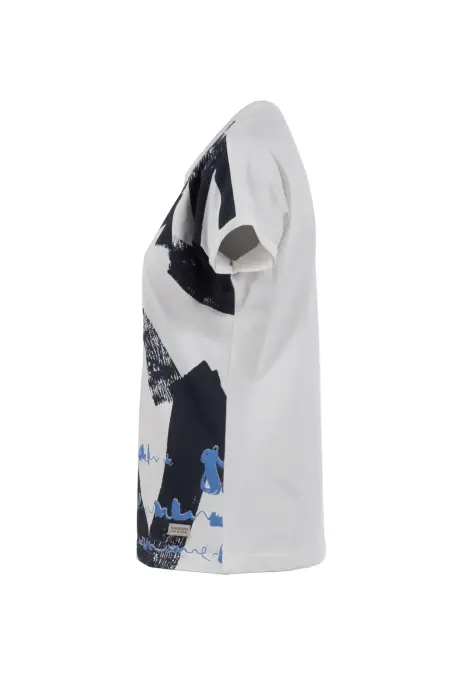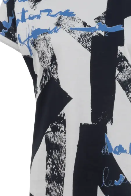 T-Shirt mit überschnittener Schulter und großflächigem Frontprint in cooler Optik mit Farbakzenten. Durch die einfarbig gehaltene Rückseite ergibt sich ein harmonisches Gesamtbild.
