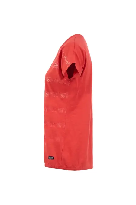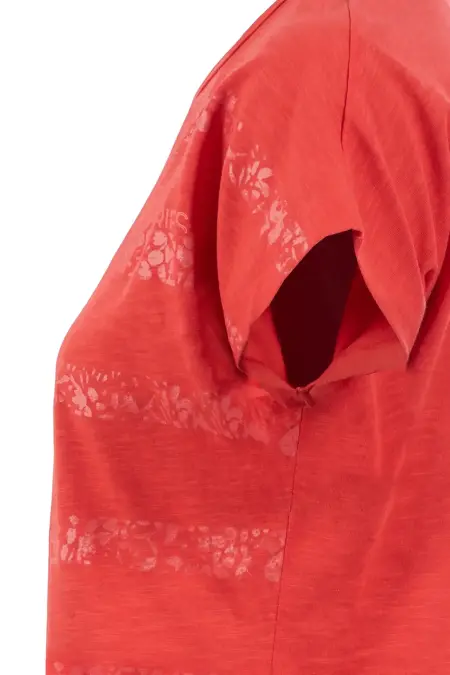 T-Shirt mit Rundhalsausschnitt und überschnittener Schulter für eine feminine Optik. Das Highlight des Shirts bildet der raffinierte Streifenprint aus floralen Elementen, welcher sich nach unten hin auflöst, wodurch das Design noch einzigartiger wird.