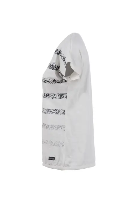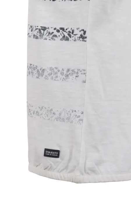T-Shirt mit Rundhalsausschnitt und überschnittener Schulter für eine feminine Optik. Das Highlight des Shirts bildet der raffinierte Streifenprint aus floralen Elementen, welcher sich nach unten hin auflöst, wodurch das Design noch einzigartiger wird.