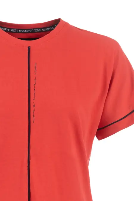 Rundhals T-Shirt mit Comfort Sleeve für ein besonders gutes Tragegefühl. Dünne Kontraststreifen und ein kleiner Lettering-Print geben dem Oberteil einen sportiven Charakter.