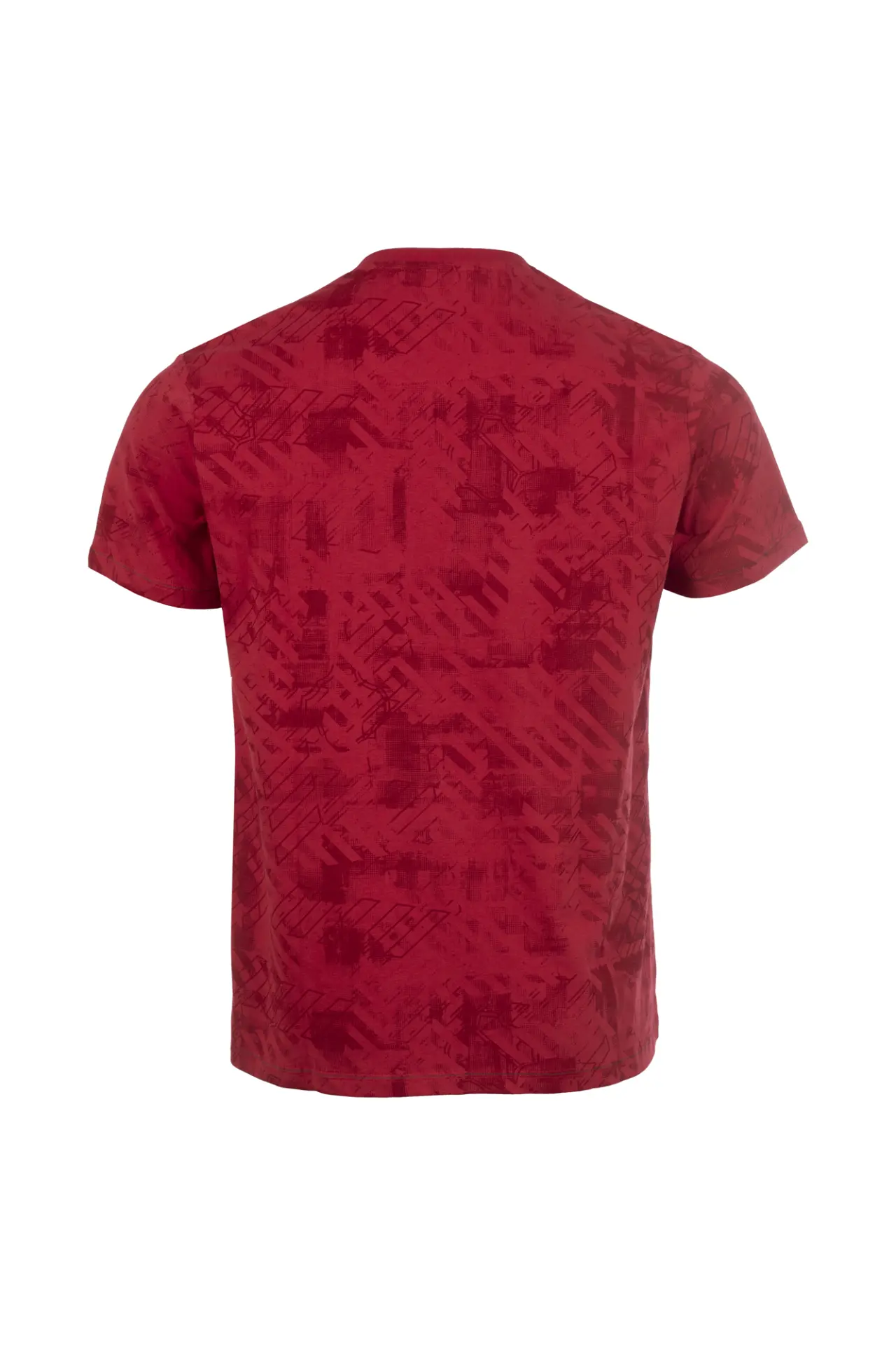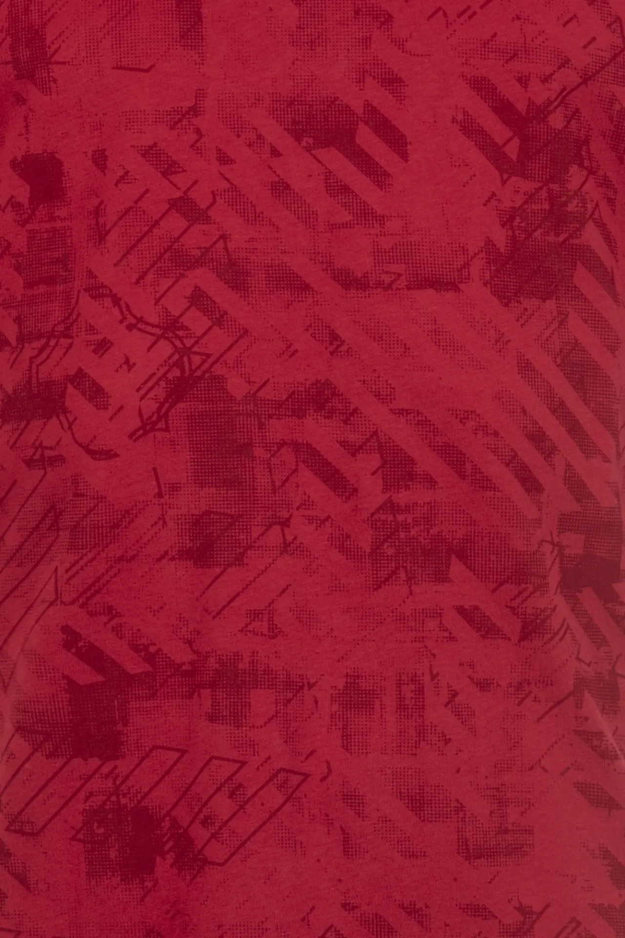 T-Shirt mit leichtem V-Ausschnitt und angenehm weicher, gepeachter Oberfläche für hohen Tragekomfort. Optisch besticht das Shirt durch den abstrakten Allover-Print in tonaler Farbgebung. Ein kleiner Brustprint in Kontrastfarbe setzt einen frischen Akzent und lockert den Look dezent auf.