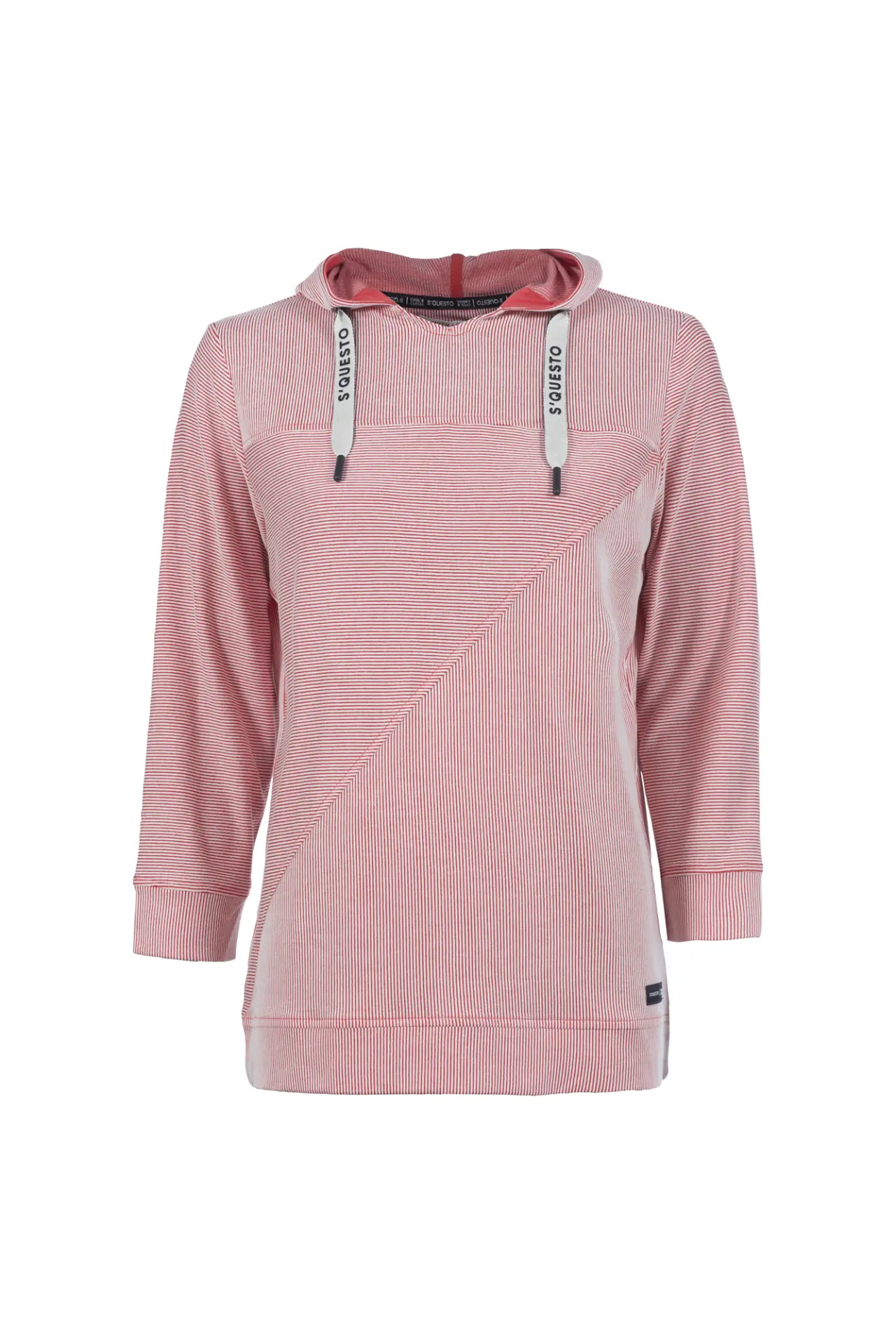 Sportives 3/4-Arm-Shirt mit Kapuze, das durch schmale Streifen und feine Ziernähte einen frischen Look bekommt. Die bedruckten Kordeln an der Kapuze setzen einen verspielten Akzent.