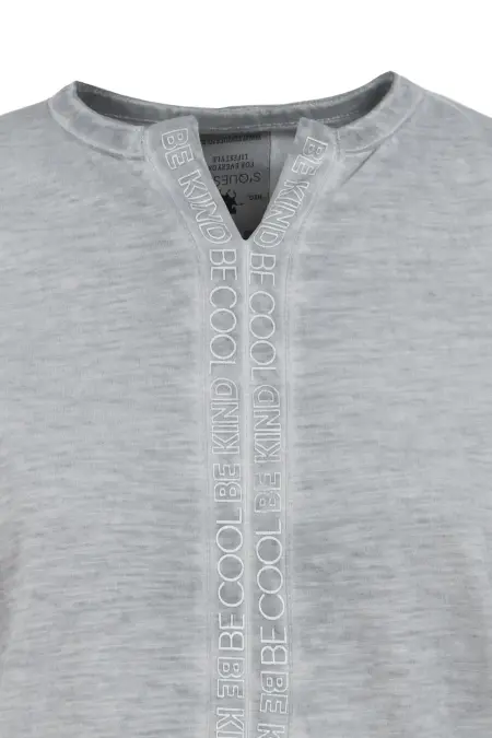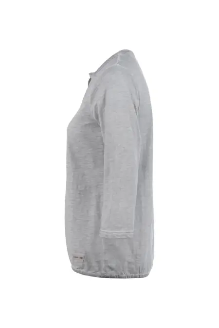 Sportives Shirt mit 3/4-Arm in cooler Cold-Dye-Optik. Das Shirt hat ein kleines V-Detail am Kragen für einen feminineren Schnitt. Ein zarter Lettering-Print auf einem Frontpanel rundet den Look ab.