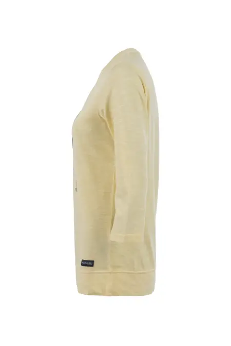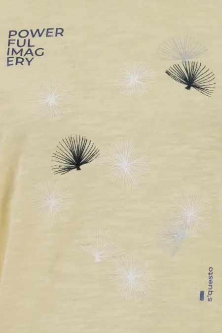 Leichtes Shirt mit 3/4-Arm und Rundhalsausschnitt. Mit verspieltem Frontprint mit Flockelementen.