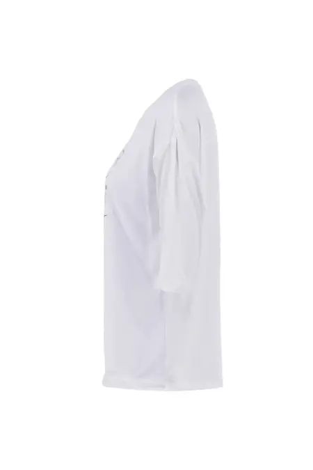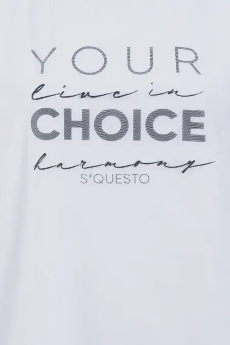Modisches Shirt mit 3/4-Arm und Rundhalsausschnitt. Das Shirt ist besonders, durch eine Meshlage und einen raffinierten Lettering-Print mit edel glänzenden Elementen. Es ist in Schwarz und in Weiß erhältlich, womit das Shirt vielseitig kombinierbar ist, z.B. mit einem S’questo Blazer.