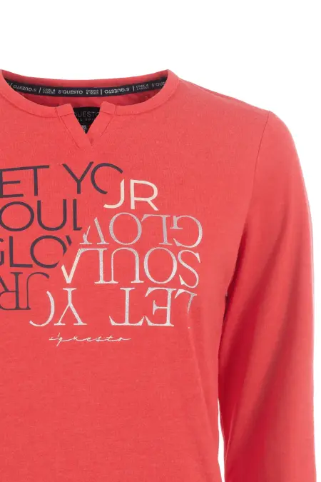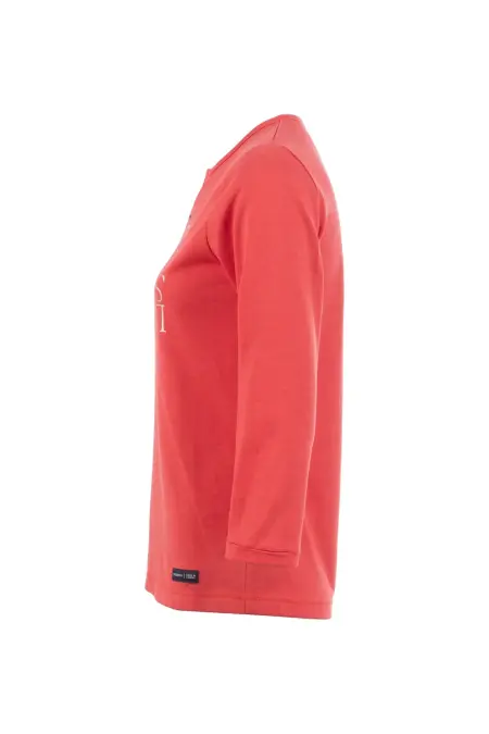 Shirt mit 3/4-Arm und kleinem V-Cut am Kragen. Das Shirt zeichnet sich durch den zweifarbigen Lettering-Print in moderner Optik aus.