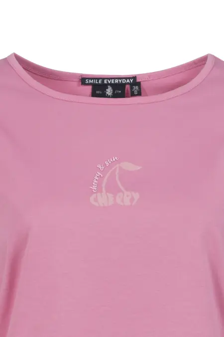 Dieses schlichte 3/4-Arm-Shirt überzeugt durch Komfort und feine Details. Der dezente, tonale Brustprint setzt einen subtilen Akzent, die aufgeschlagenen Ärmel verleihen einen femininen, lässigen Look – ideal für den Alltag