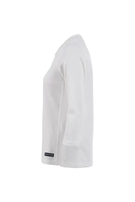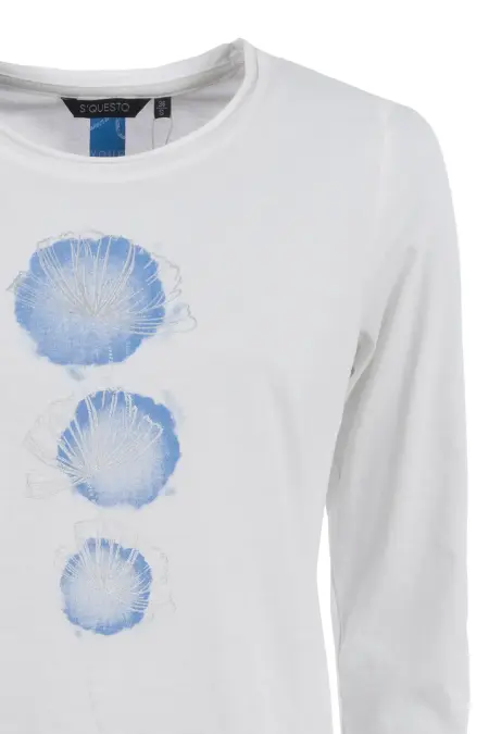 Shirt mit 3/4-Arm und Rundhalsausschnitt mit offener Kante als besonderes Detail. Die Front des Shirts ziert ein femininer Print mit floralem Motiv.