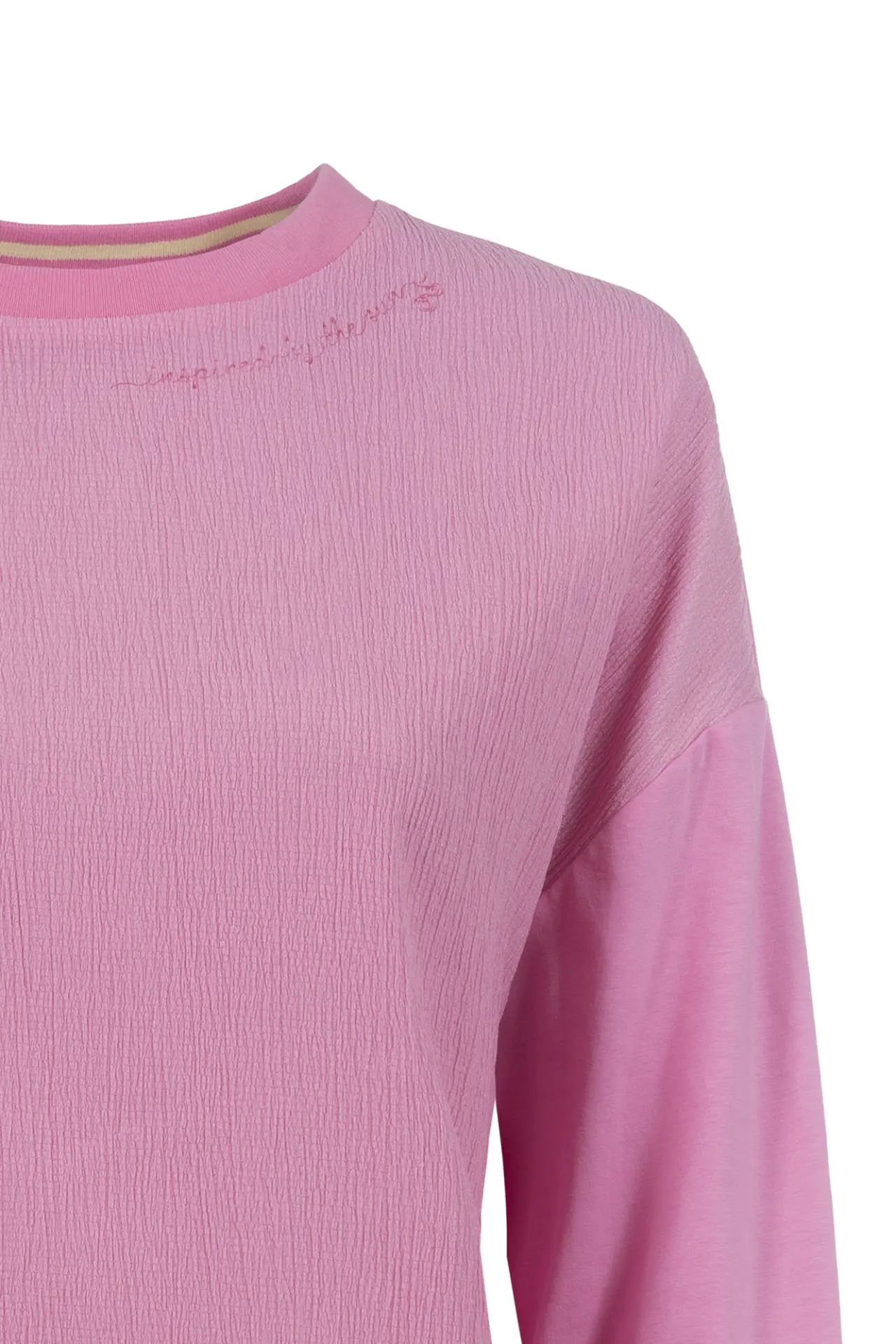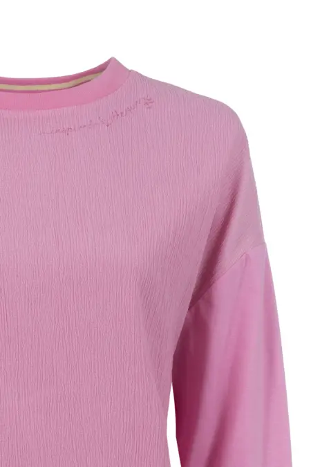 - Der Rundhalsausschnitt und die überschnittenen Schultern sorgen für einen entspannten Sitz und machen es zu einem vielseitigen Begleiter für einen lässigen Casual-Look.