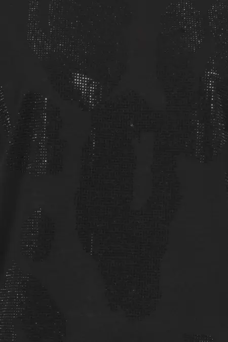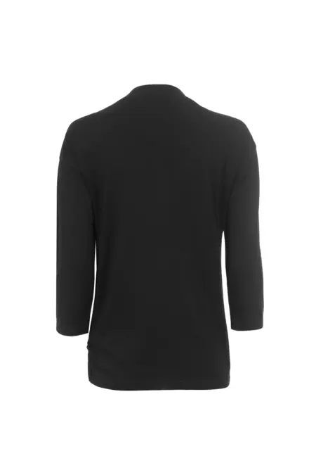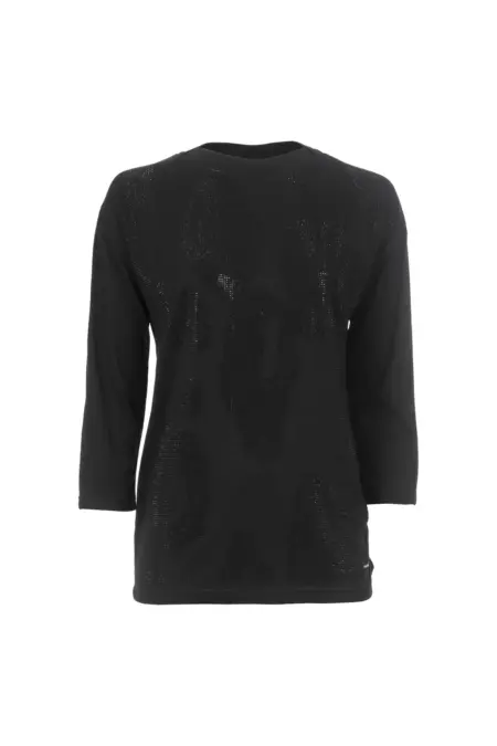 Feminines Shirt mit 3/4-Arm und überschnittener Schulter. Das Shirt wertet dein Outfit durch ein tonal gehaltenes Leo-Motiv aus Strasssteinen auf. Durch die tonale Gestaltung in Schwarz ist das Shirt vielseitig kombinierbar.