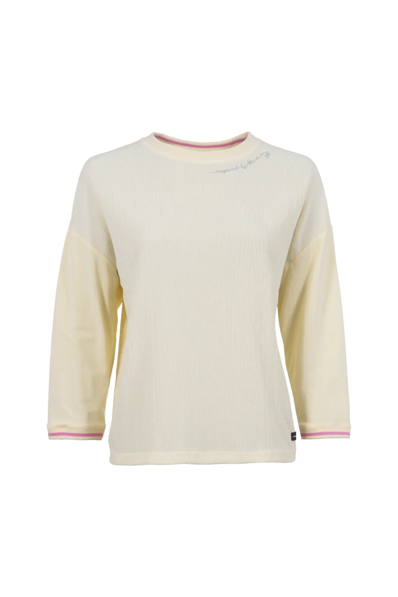 Dieses Mix&Match-Shirt überzeugt mit einer Front aus Webmaterial in Streifenoptik. Dezente Rippbündchen und ein feiner Lettering-Print am Ausschnitt verleihen dem Shirt eine moderne, sportive Note. Der Rundhalsausschnitt und die überschnittenen Schultern sorgen für einen entspannten Sitz und machen es zu einem vielseitigen Begleiter für einen lässigen Casual-Look.