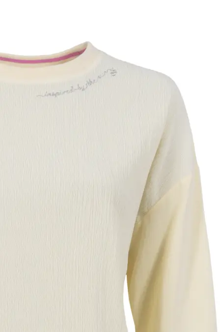 - Der Rundhalsausschnitt und die überschnittenen Schultern sorgen für einen entspannten Sitz und machen es zu einem vielseitigen Begleiter für einen lässigen Casual-Look.