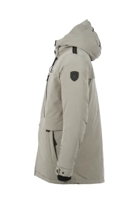 Winterjacke mit Kapuze aus moderner Strukturware. Mit zwei praktischen Reißverschlusstaschen. Die Prints, Kordeln, Reißverschlüsse und Tapes sind in Kontrastfarbe abgesetzt.