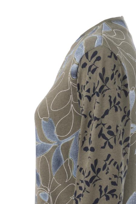 Dieser leichte Strickpullover mit Rundhalsausschnitt zeichnet sich durch die verschiedenen Muster an Body und Ärmeln aus. Durch die floralen Motive entsteht ein femininer Look.